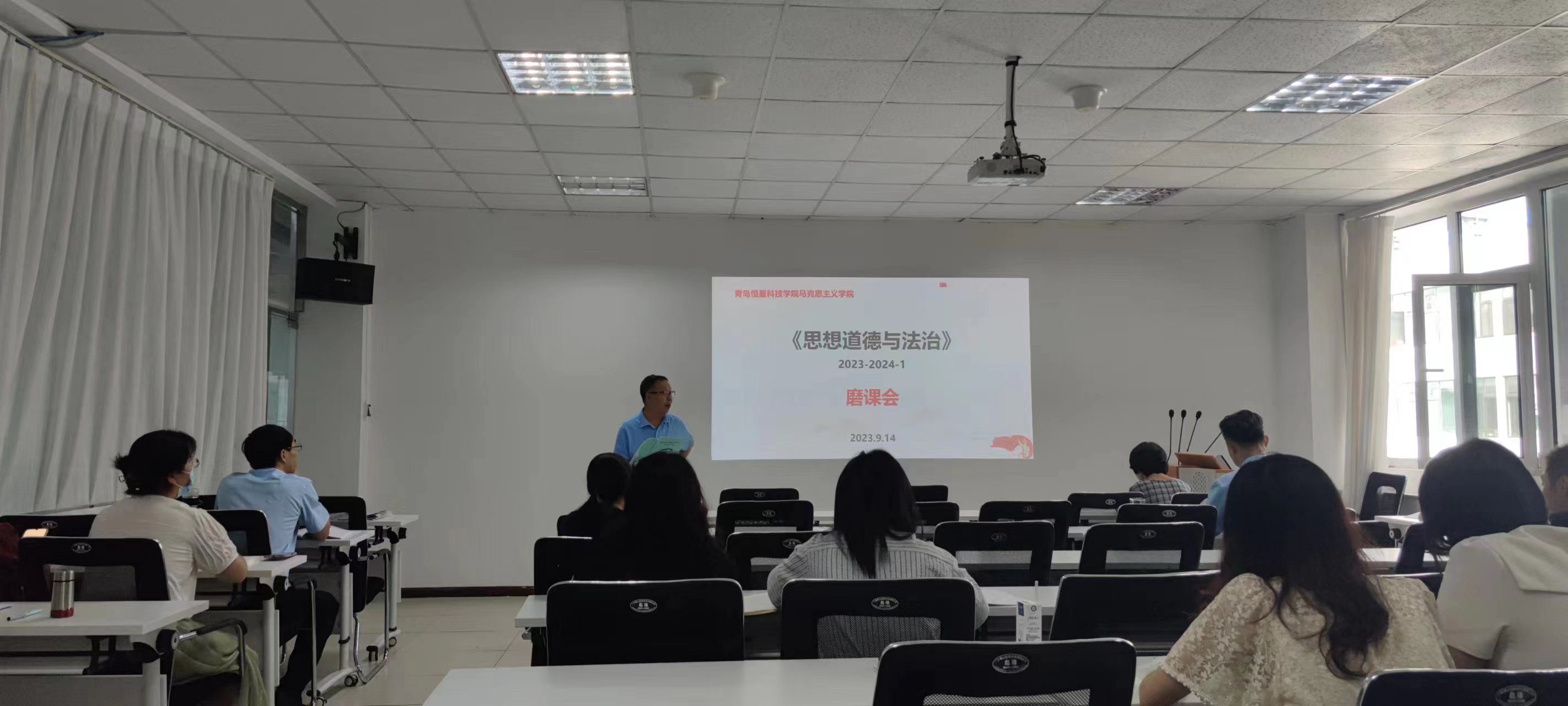 为进一步提升教师的专业素养和教学能力,搭建新老教师们互相交流、探讨的平台,助力青年教师专业成长,提升青年教师专业水平,9月14日上午9点,马克思主义学院开展了以“磨课促成长--教中思,思中行,行中进”为主题的思想道德与法治课程磨课示教活动。会议由教研室主任于丹主持,院长杨福和教授做了重要讲话,全体任教老师参会。