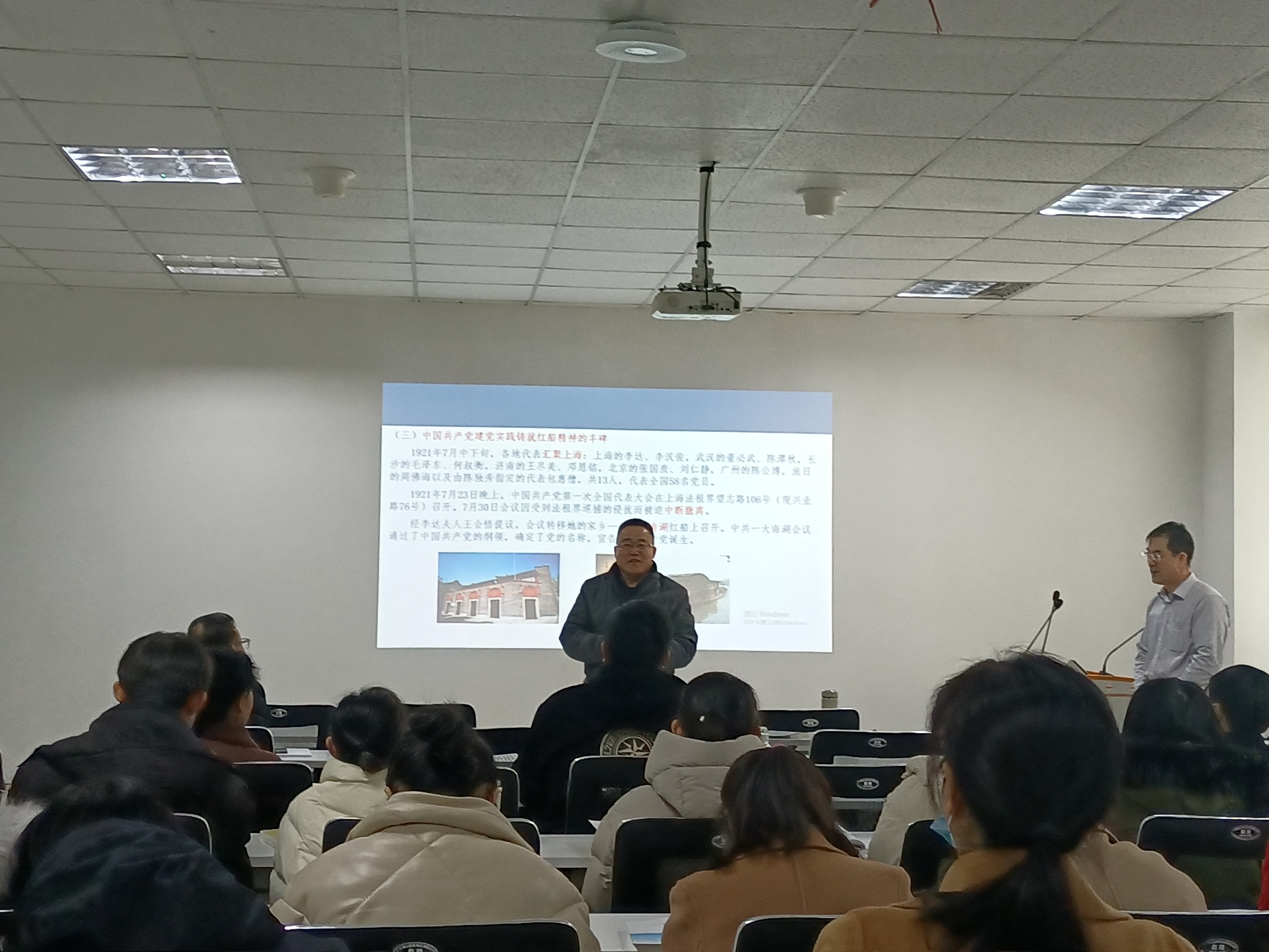 贺教授首先从理论和实践层面向大家讲解了为什么中国共产党能够在中华民族的危难时期自觉肩负起挽救民族危亡的历史重任,并且团结和带领全国各族人民通过艰苦卓越的奋斗最终取得革命和建设的伟大胜利,总结了中国共产党的百年奋斗取得伟大成就的原因及经验。最后号召大家认真学习贯彻党的二十大会议精神,不忘初心,牢记使命,向着党的第二个百年奋斗目标奋勇前进,开创新的百年辉煌。其中,贺教授在讲到王尽美、邓恩铭等先烈的历史事迹时给大家留下了深刻的印象,带来了心灵的巨大震撼。