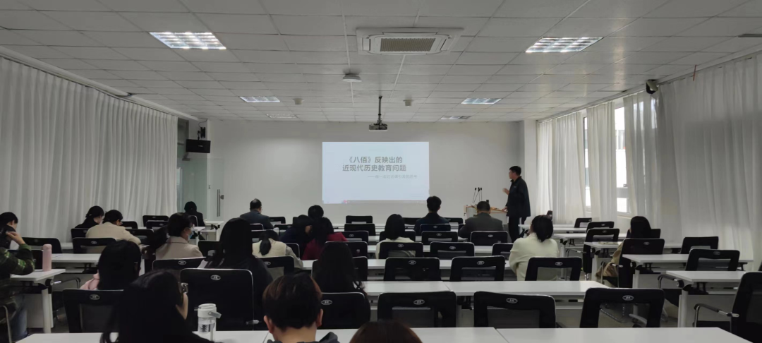 2024年4月12日,马克思主义学院在图书馆第六会议室举办了新一期学术讲座。作为本次讲座的主讲人,朱宏伟老师应邀为大家做了题为《电影《八佰》所反映出的历史思考》的学术讲座。本次讲座由李靓老师主持,马克思主义学院全体教师参加。