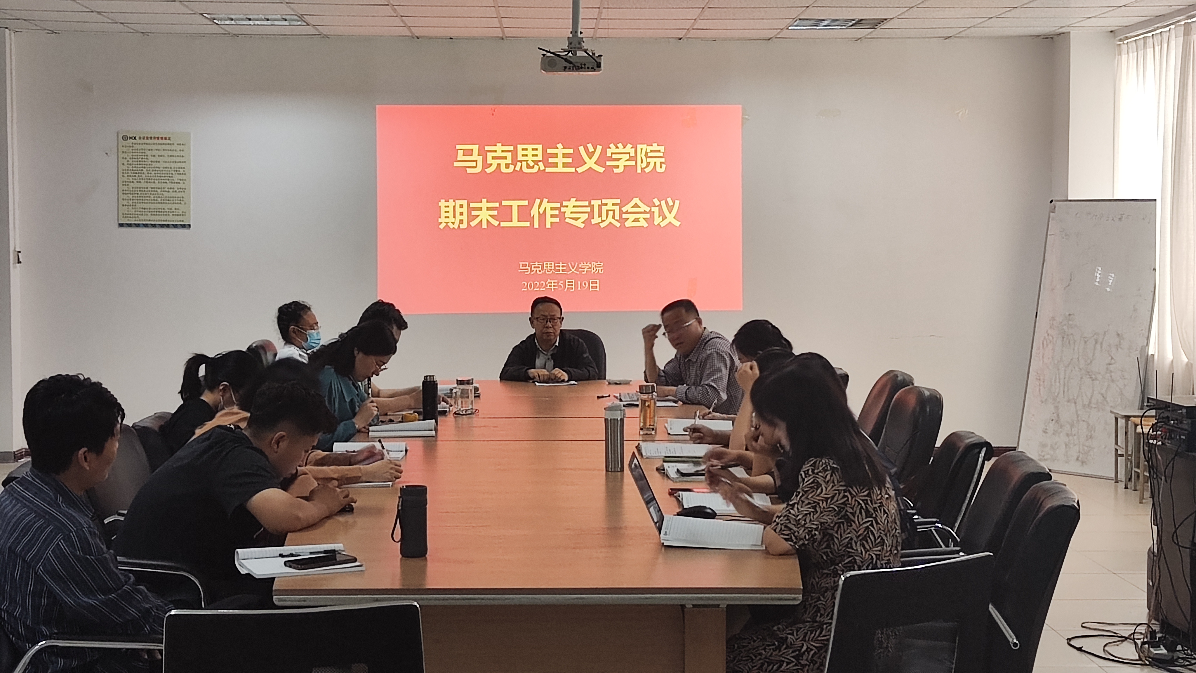 为确保期末教学、考试、阅卷等工作高效、有序进行,2022年5月19日下午4:00,马克思主义学院全体教师在图书馆六楼第六会议室召开期末工作专项会议,杨福和院长主持了会议并做了重要讲话。