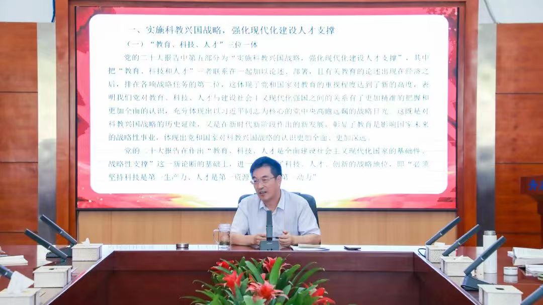 为全面深入学习贯彻党的二十大精神,在第39个教师节即将来临之际,2023年9月1日下午,在第二会议室,贺瑞教授为马克思主义学院全体教师以《以党的二十大精神为动力,坚持“立德树人”,办好人民满意的教育》为题进行专题讲座。