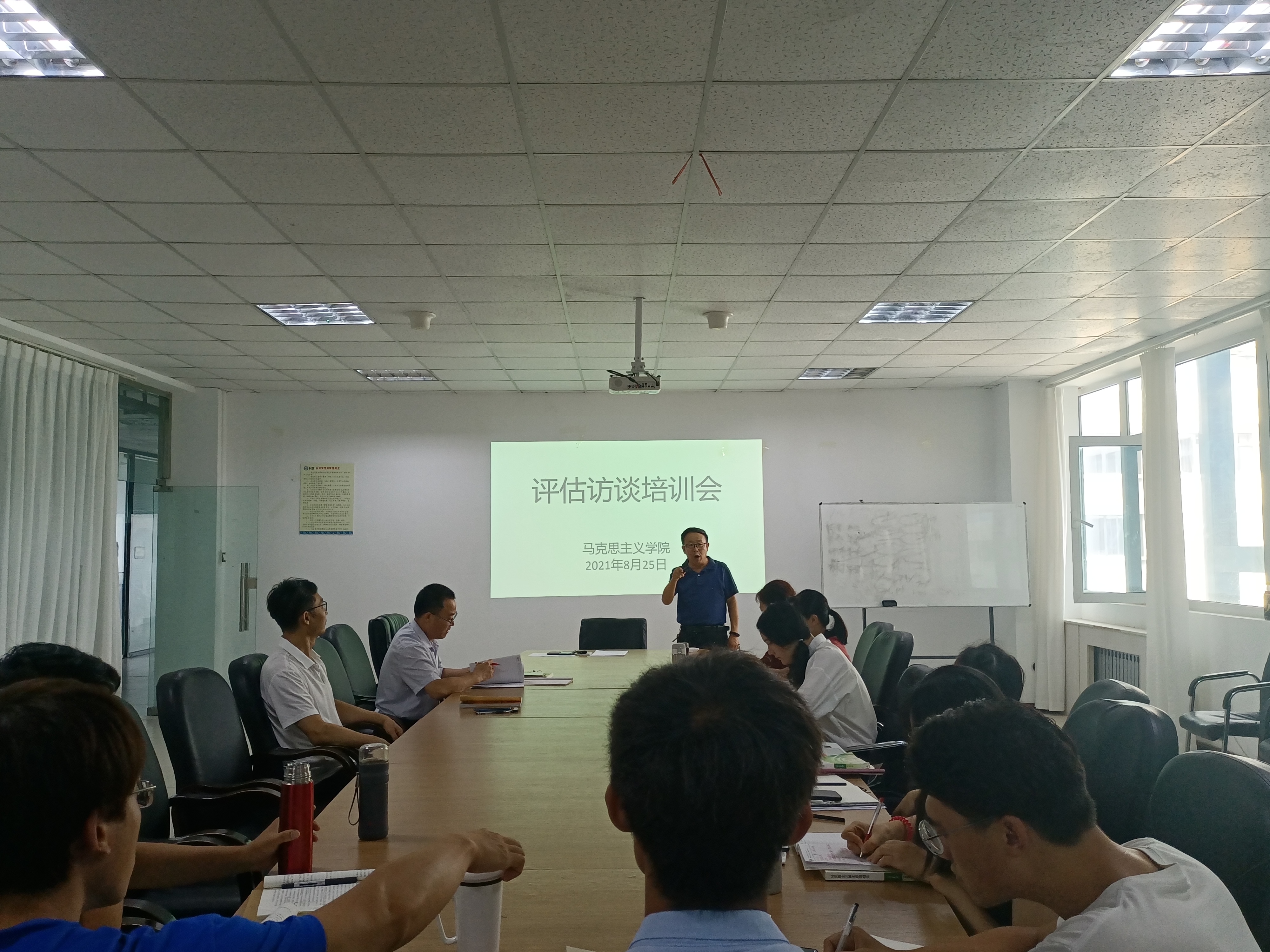 为顺利完成即将到来的本科评估工作,深入解读我校本科质量评估报告的指标体系和相关要求,同时有针对性的了解本科评估访谈的相关内容,2021年8月25日上午,马克思主义学院在图书馆第六会议室召开了本科评估访谈培训会,会议由院长助理刘锁霞主持,王春娟副校长、杨福和院长、张至昊副院长以及马克思主义学院全体教师参加了会议。