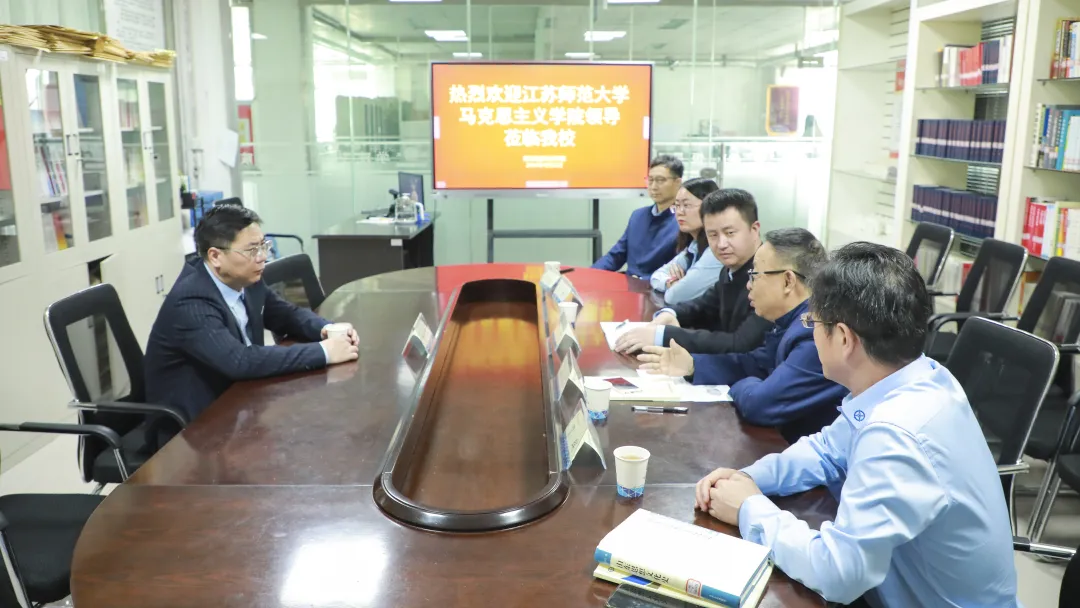 为进一步增进校际交流,谋求学院高质量发展,4月22日上午,江苏师范大学马克思主义学院靳书君副院长一行来我校马克思主义学院调研交流,我校党委副书记、副校长王立庭,学校人事处处长王翠、马克思主义学院名誉院长杨福和、特聘教授贺瑞、焦可法参加了本次调研交流活动。