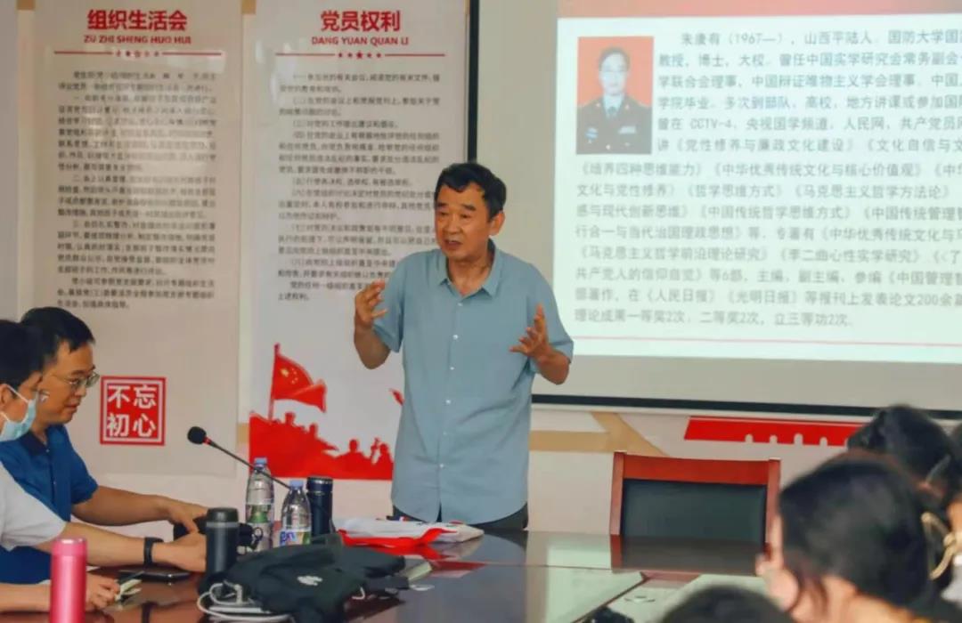 为推动中华优秀传统文化与马克思主义深度融合发展,提高教师的思想水平与授课质量,并圆满完成学校本科评估的任务,2021年8月3日,马克思主义学院特邀国防大学国家安全学院朱康有教授、山东大学马克思主义学院(威海)吴文新教授来我院作专题讲座。讲座在图书馆二楼第八会议室举行,由青岛恒星科技学院副校长张王庚主持,马克思主义学院全体教师参加。