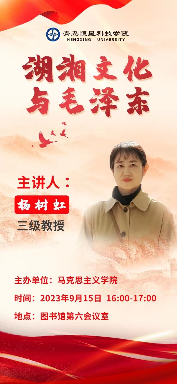 9月15日下午,马克思主义学院教授开讲了系列第二期讲座在图书馆第六会议室举行。内蒙古高校思想政治理论课优秀教师、内蒙古自治区大中小学思政课一体化建设指导委员会委员、马克思主义学院特聘教授杨树虹以“湖湘文化与毛泽东”为题,为马克思主义全体教师带来了一场精彩的讲座。