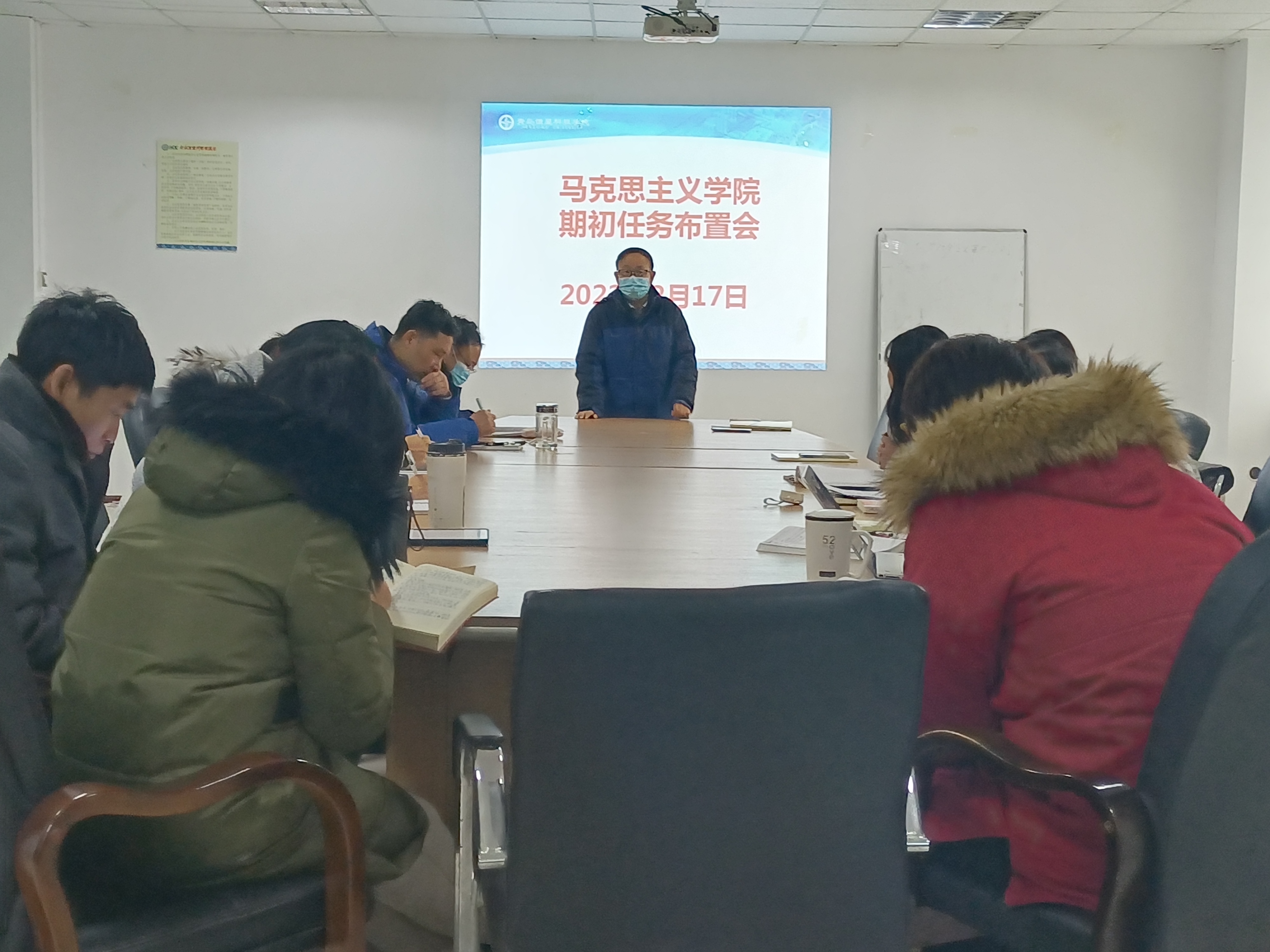 一年之计在于春。2022年2月17日上午,马克思主义学院在图书馆第六会议室召开新学期期初任务布置会,学院全体教师参加。