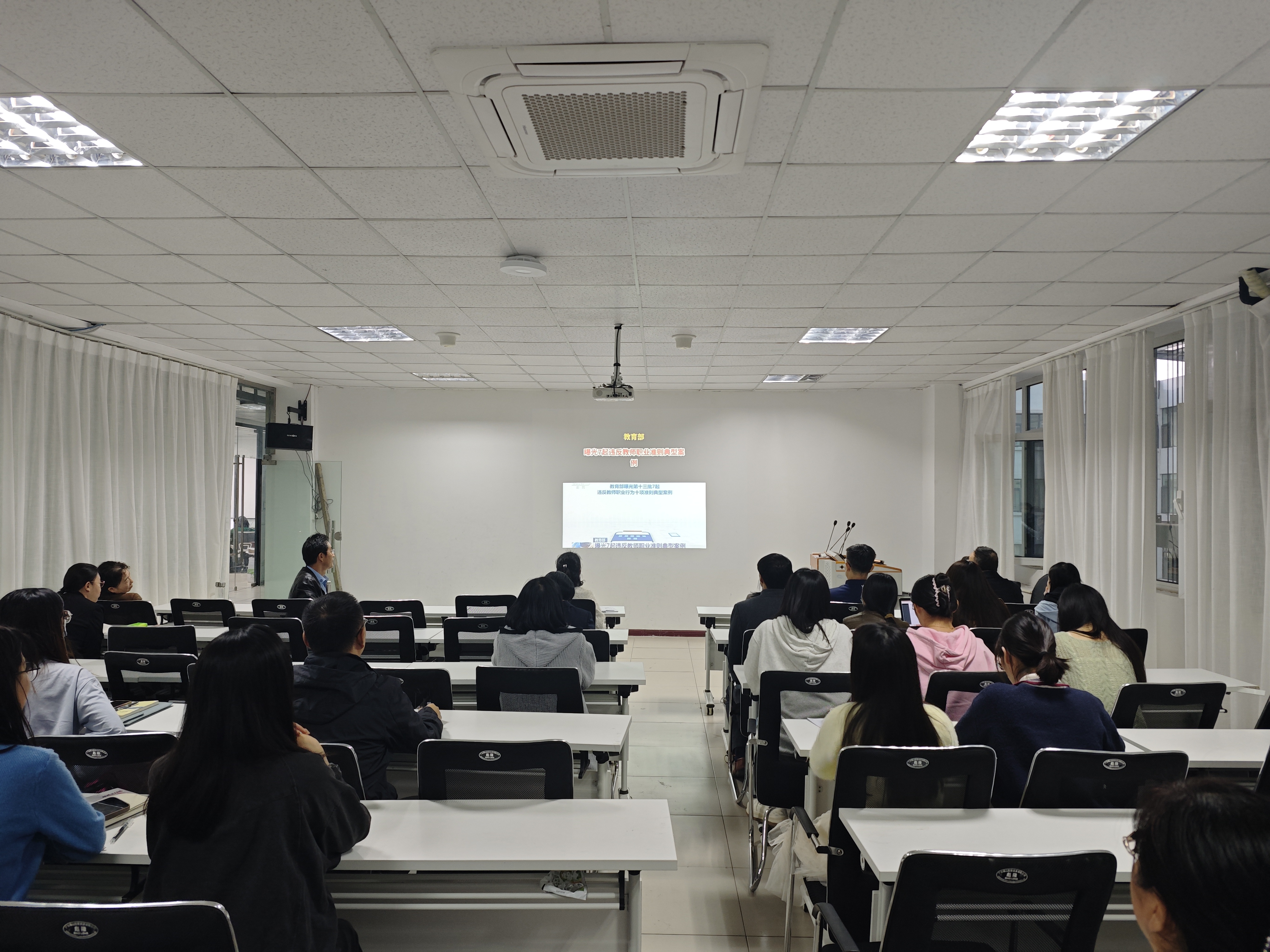 以案肃纪,以案说法。七起触目惊心的典型案例和沉痛教训,引起了全体教师思想上的极大反响,敲响了廉洁自律的警钟,警示每位教师务必引以为戒,依法执教,始终绷紧作风建设这根弦,严守师德底线。