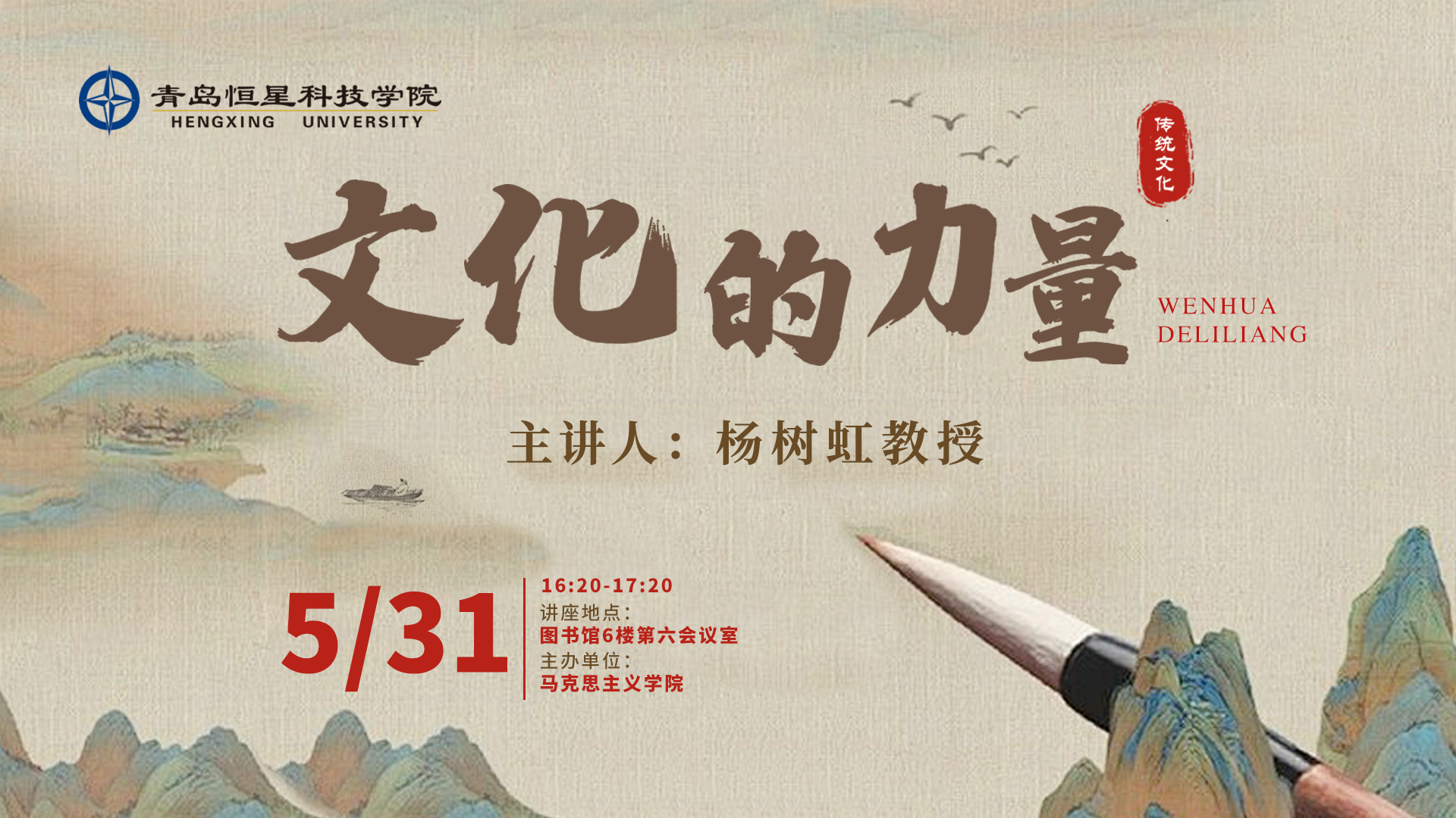 习近平总书记在党的十九大报告中指出:“要坚定文化自信,推动社会主义文化繁荣兴盛。”“没有高度的文化自信,没有文化的繁荣兴盛,就没有中华民族伟大复兴。”这把文化的地位和作用提高到一个崭新高度。5月31日下午,马克思主义学院“春天再出发,教授开讲啦”系列新一期讲座在图书馆第六会议室举行。马克思主义学院校内外聘教授杨树虹带领全体马院教师深入探索文化的力量。