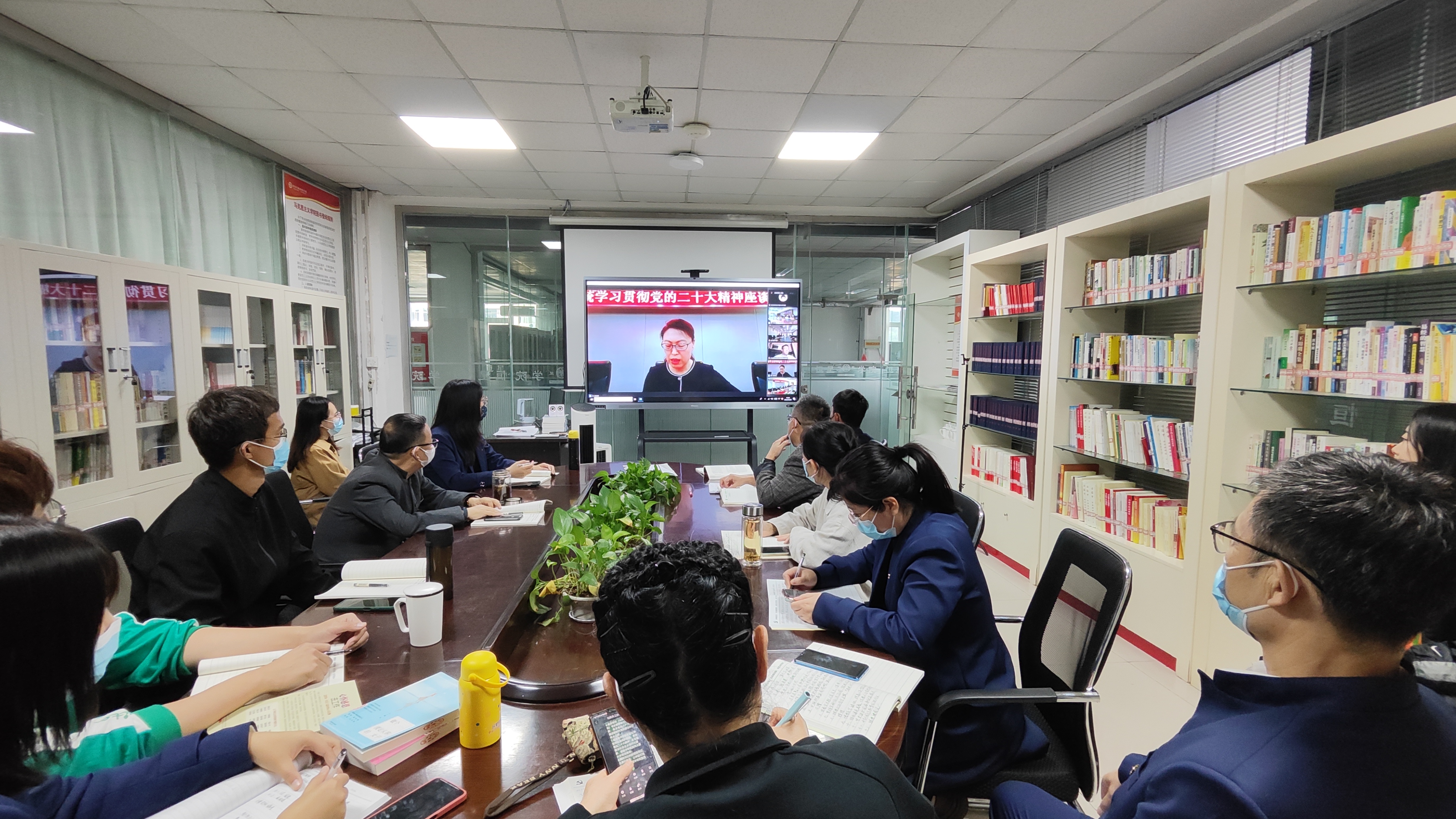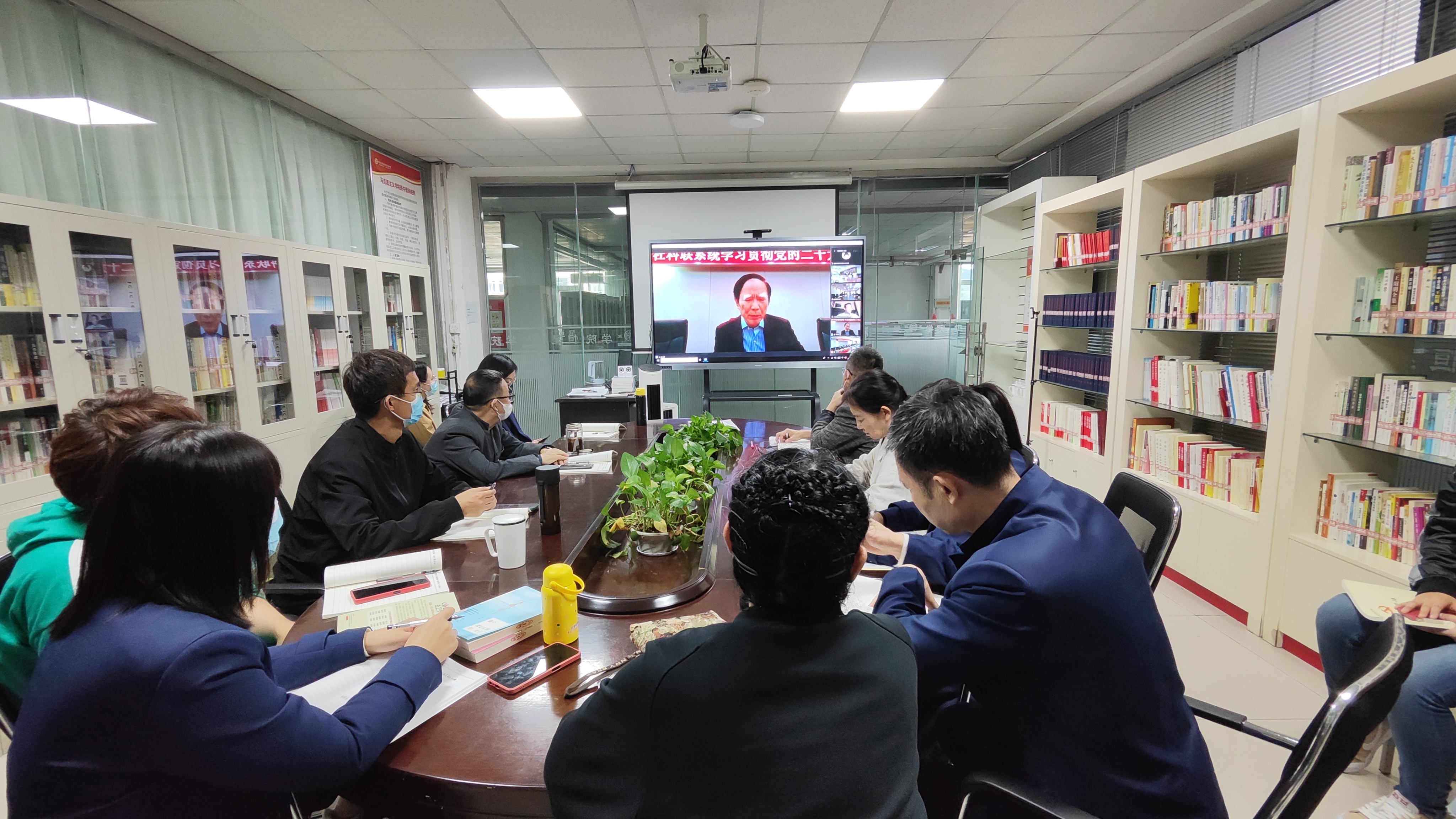 为全面深刻学习领会党的二十大精神,2022年10月26日下午2:30,马克思主义学院在图书馆七楼资料室召开了学习贯彻党的二十大精神线上、线下座谈会,会议由许盼盼老师主持,全体教师参加,杨福和院长做了重要讲话。