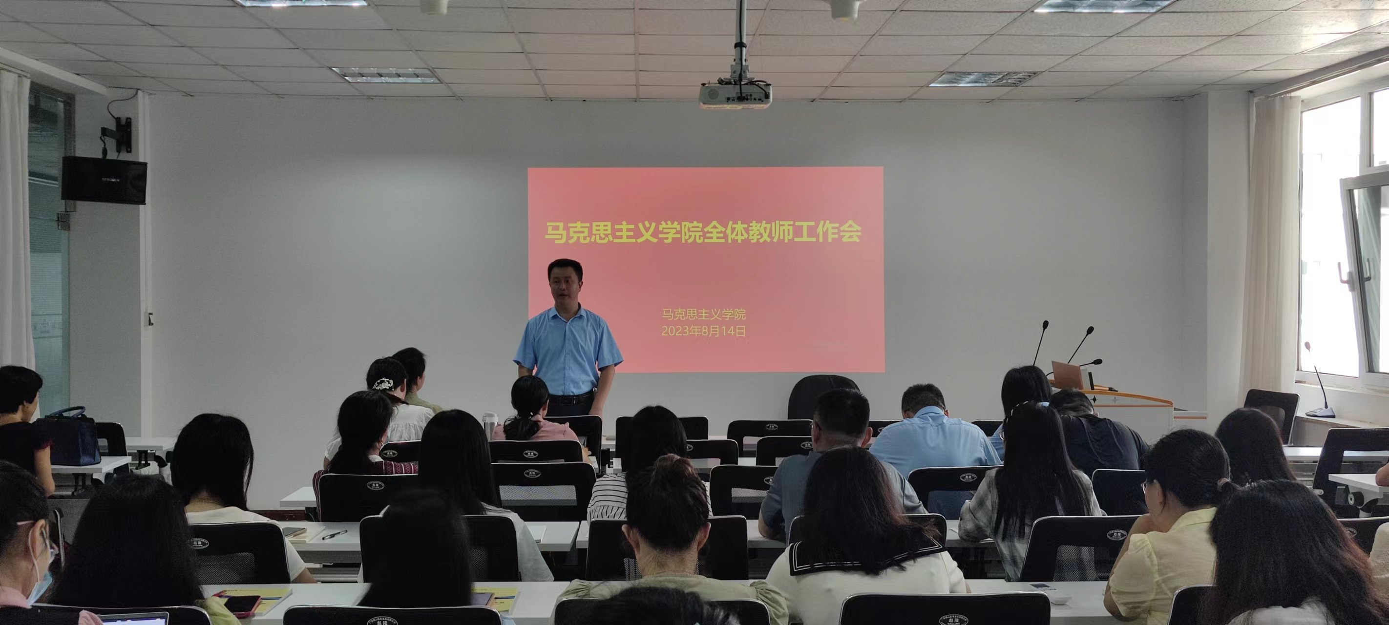 2023年8月14日上午10点,我院在图书馆第六会议室举行全体教职工大会,出席本次会议的领导有:青岛恒星科技学院党委副书记、副校长王立庭,马克思主义学院名誉院长杨福和,马克思主义学院执行院长李莉。本次会议由马克思主义学院办公室主任盛芳主持,全体教职工出席大会。