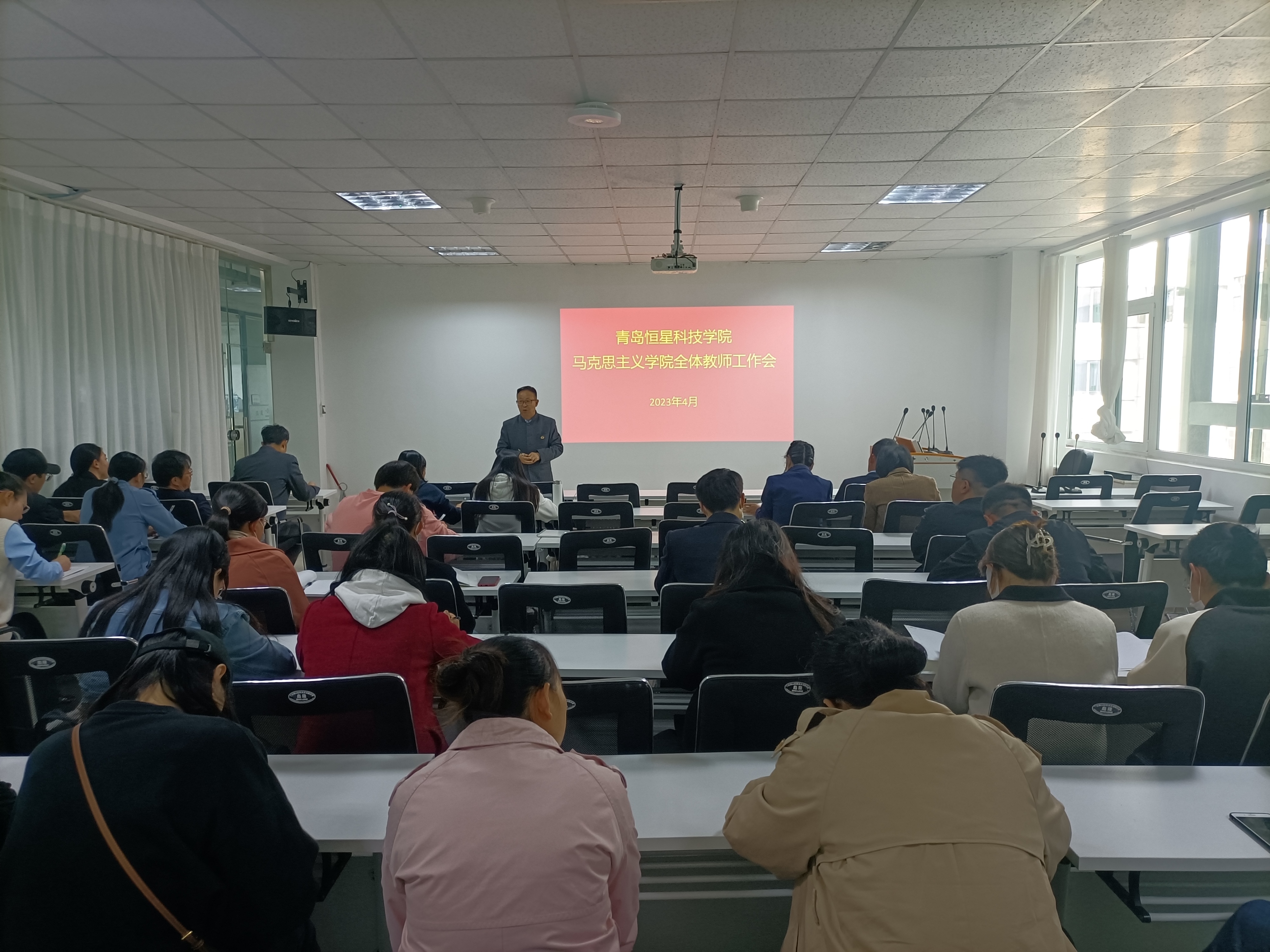 为总结近期教学工作的经验与不足、安排学院下一步重点工作,同时由外出培训老师分享学习的心得体会,2023年4月10日上午8:00,马克思主义学院在图书馆第六会议室召开了全体教师会议。