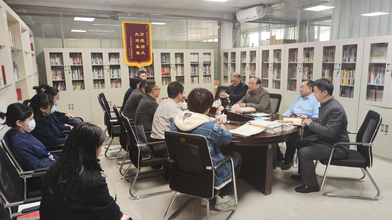 3月8日,青岛恒星科技学院董事长陈昌金博士,党委书记纪德臻同志、校长毕宪顺教授、办公室主任王立庭同志莅临马克思主义学院进行调研指导工作,马克主义院务会全体成员及部分教师参加会议。