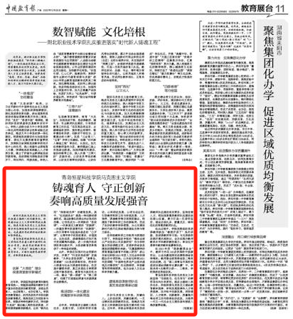 2023年12月25日,《中国教育报》以“铸魂育人 守正创新 奏响高质量发展强音”为题报道我院通过提升教师队伍综合素质、推进思政课教学改革、融入“大思政”理念等方式,打造特色教学课堂,取得了显著成效。